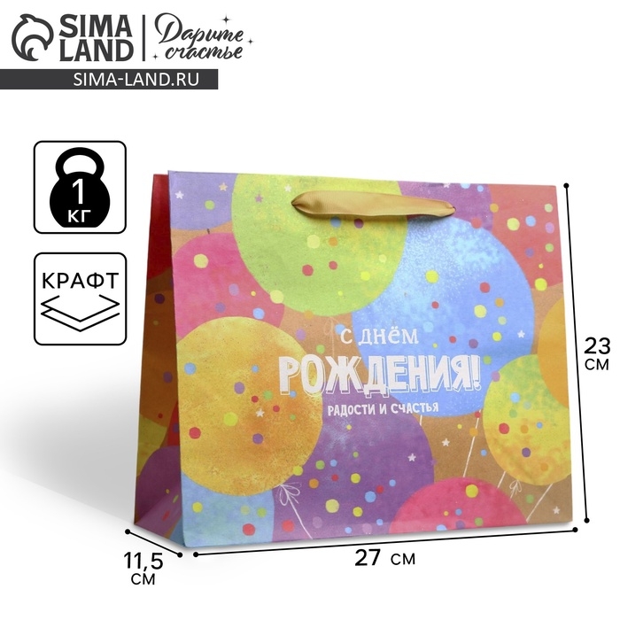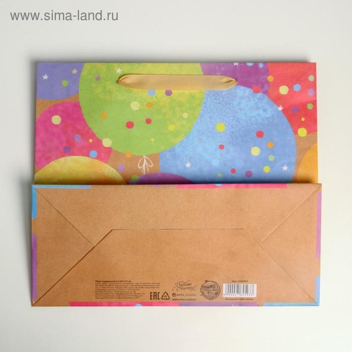 Пакет подарочный крафтовый горизонтальный, упаковка, «С Днем Рождения!», ML 27 х 23 х 11,5 см