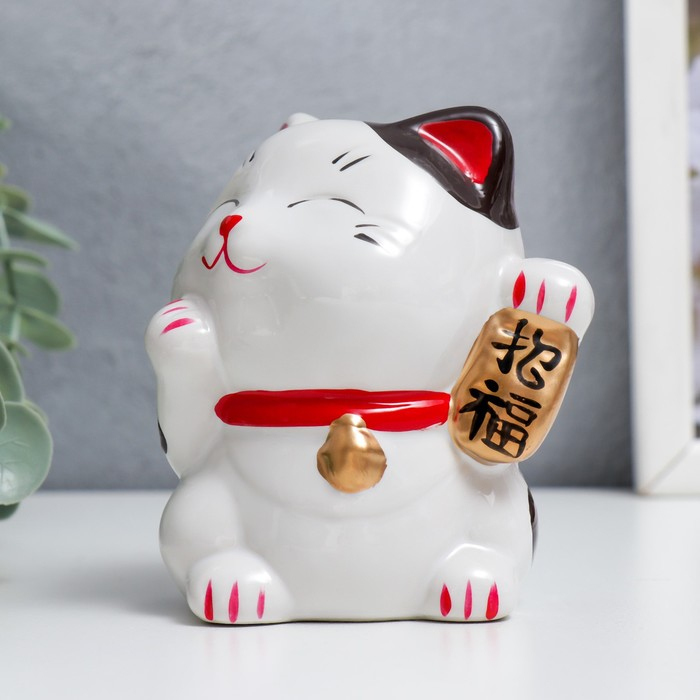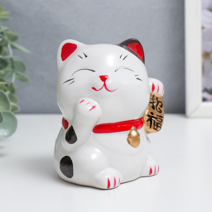 Копилка керамика "Манэки-нэко - иероглиф счастье и удача" 9,3х7х7 см