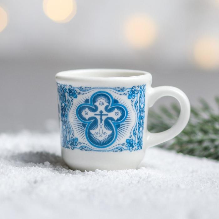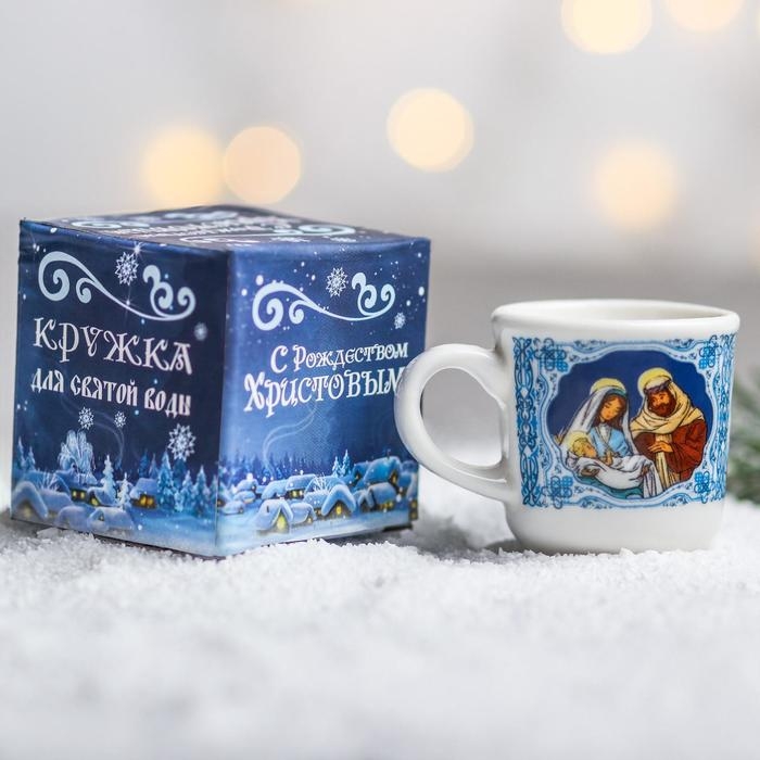 Кружечка – сделана из керамики. Кружка сувенирная, небольшая подходит для святой воды. Наша кружечка станет хорошим подарком на Рождество и другие православные праздники себе и близким.
