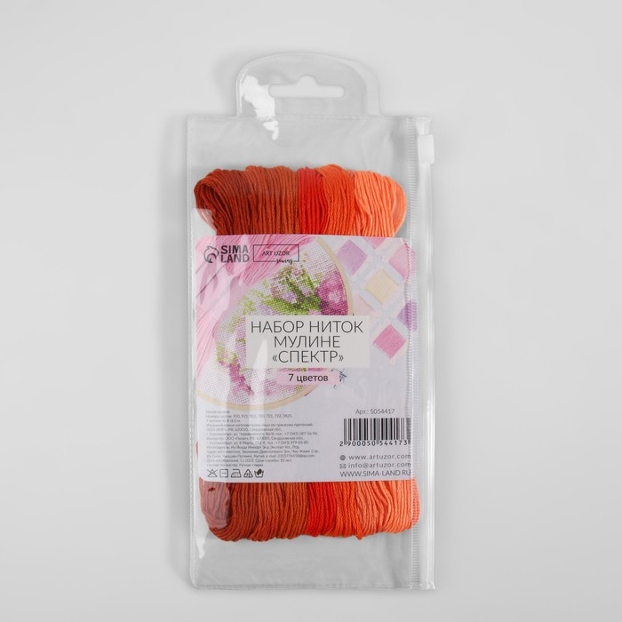 Набор ниток мулине, 8 ± 1 м, 7 шт, цвет оранжевый спектр