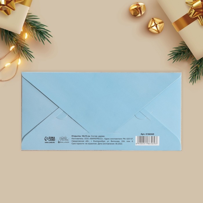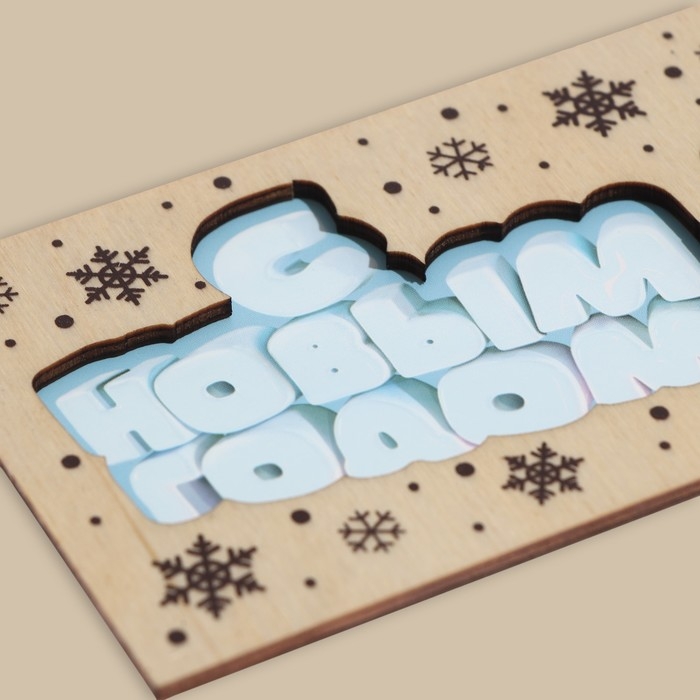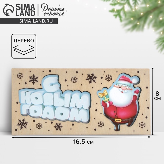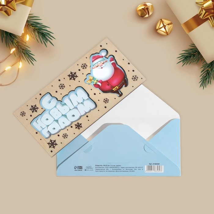Конверт для денег деревянный резной "С Новым Годом!" Дед Мороз, 16,5 х 8см, Новый год