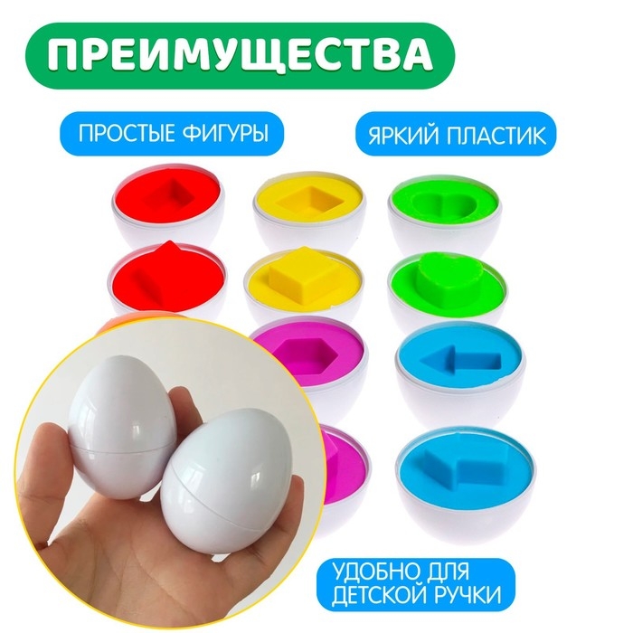 Игра способствует развитию мелкой моторики, пространственного и логического мышления, памяти и расширению кругозора. Яйца открываются легко, выполнены из пластика.