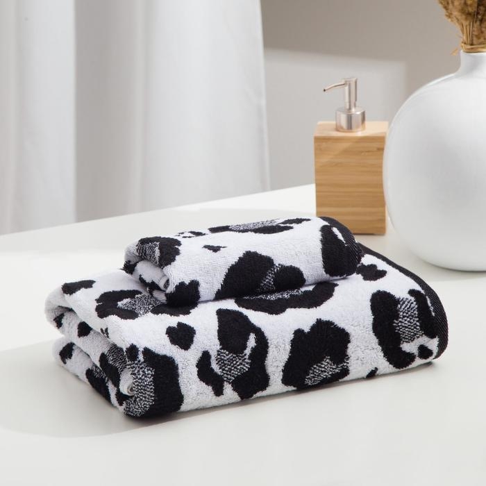 Полотенце махровое Этель ЧБ «Снежный барс», пестроткань, 30х60 см