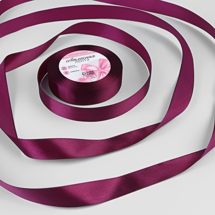 Лента атласная, 20 мм × 23 ± 1 м, цвет баклажановый №252