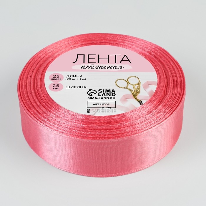 Лента атласная, 25 мм × 33 ± 2 м, цвет розовый №005