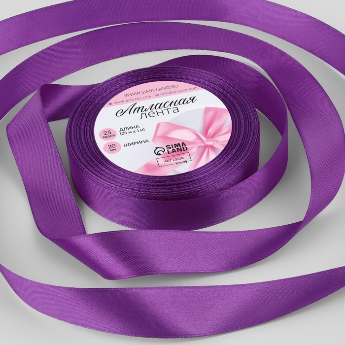 Лента атласная, 20 мм × 23 ± 1 м, цвет пурпурно-фиолетовый №35