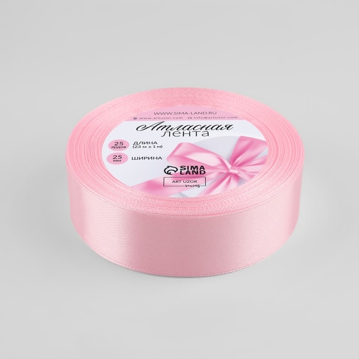 Лента атласная, 25 мм × 23 ± 1 м, цвет жемчужно-розовый №135
