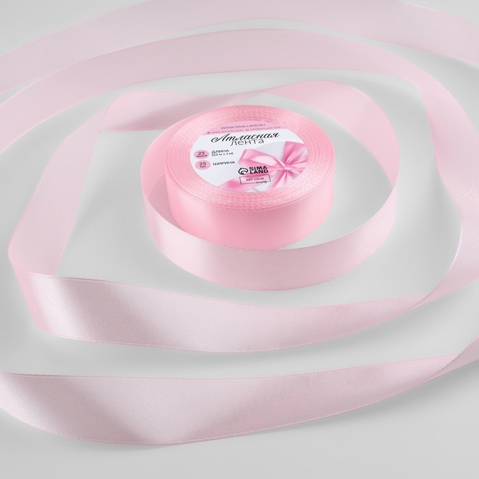 Лента атласная, 25 мм × 23 ± 1 м, цвет пастельно-розовый №43