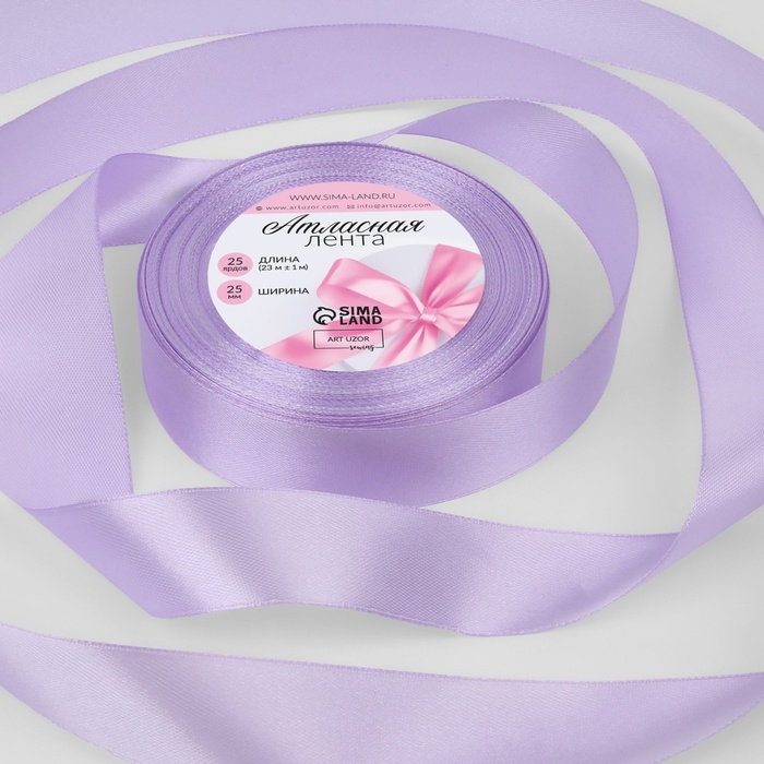 Лента атласная, 25 мм × 23 ± 1 м, цвет нежно-сиреневый №44