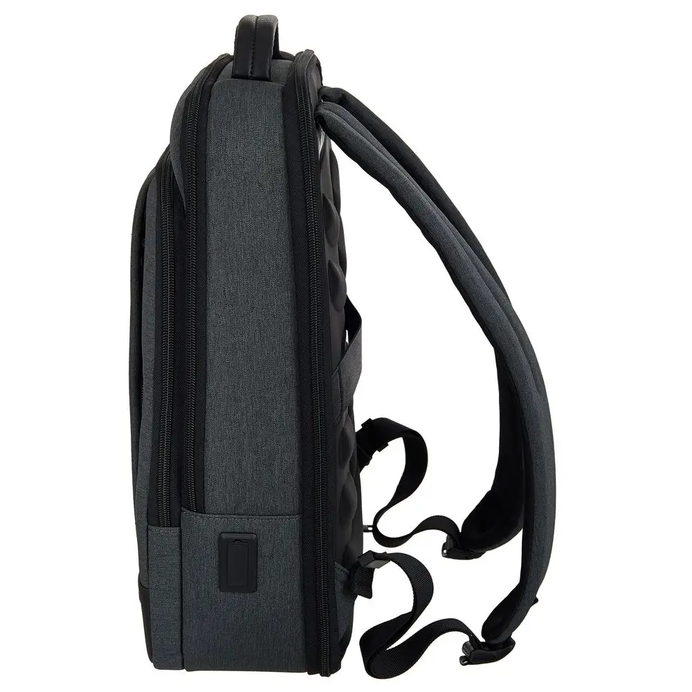 Городской рюкзак для ноутбука Santiago Slim изготовлен из влагозащищенного полиэстера и микрофибры. Карман для бутылок, удобная спинка с мягкими вставками, лямка для крепления к чемодану, эргономичные плечевые ремни и внешний USB-порт делают этот рюкзак незаменимым аксессуаром для работы, поездок и повседневных дел.