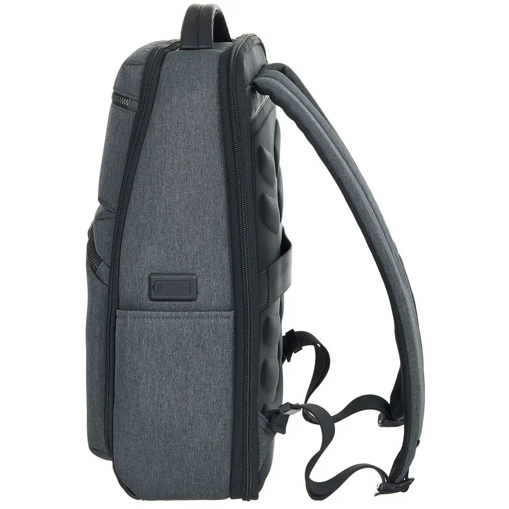 Городской рюкзак для ноутбука Santiago изготовлен из влагозащищенного полиэстера и микрофибры. Карман для бутылок, удобная спинка с мягкими вставками, лямка для крепления к чемодану, эргономичные плечевые ремни и внешний USB-порт делают этот рюкзак незаменимым аксессуаром для работы, поездок и повседневных дел.