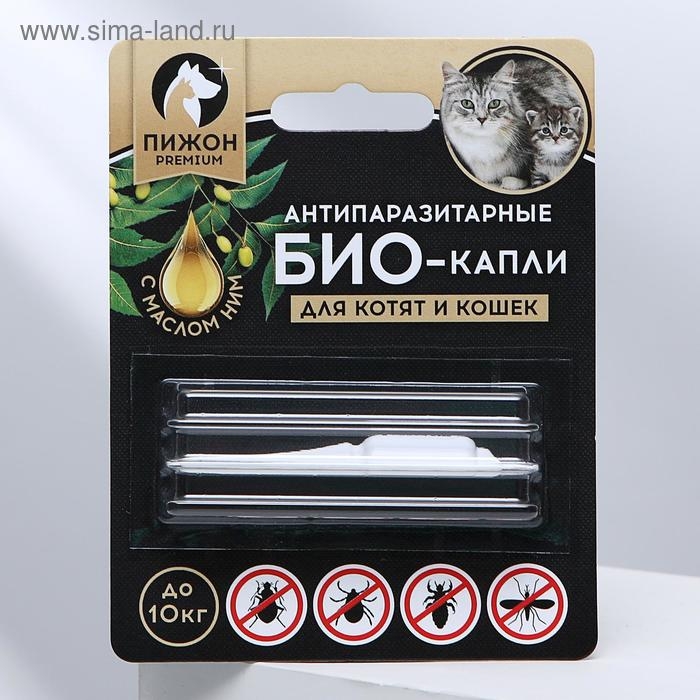 Био капли для животных от блох и клещей "ПИЖОН Premium" для котят и кошек, до 10 кг, 3х1мл