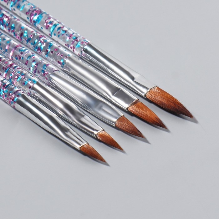 Набор кистей для наращивания и дизайна ногтей «Лепесток», 5 шт, 14 см, цвет прозрачный