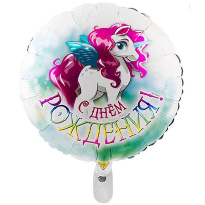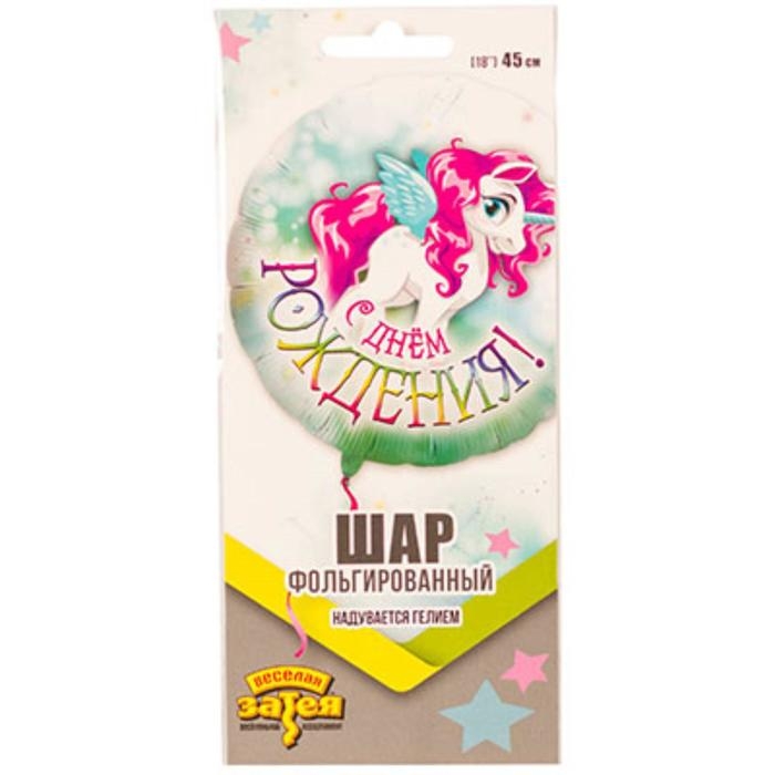 Шар фольгированный 18" «С днём рождения», крылатый единорог