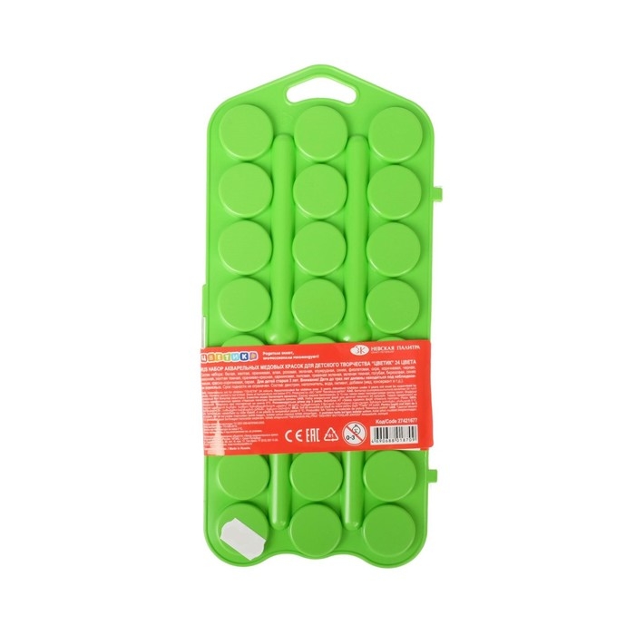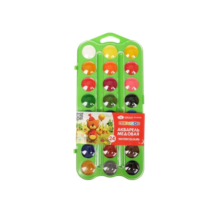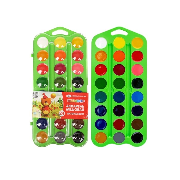 Акварель медовая 24 цвета, ЗХК "Цветик", без кисти, зеленый пластиковый футляр, 27421677