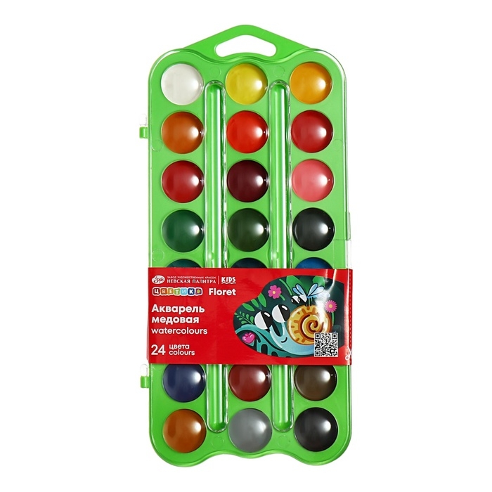 Акварель художественная в кюветах, 24 цвета х 2.5 мл, ЗХК "Санкт-Петербург", пластиковая палитра, 1942017