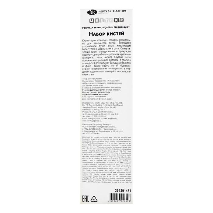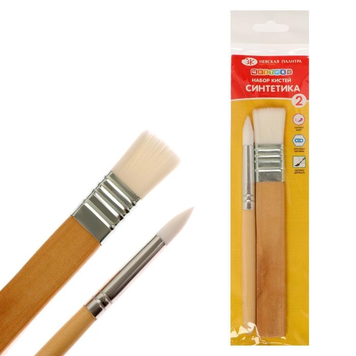 Набор кистей Синтетика 2 штуки, ЗХК "Цветик", (круглая d-7 мм; плоская d-18 мм), 391291481