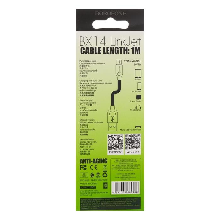 Кабель Borofone BX14, micro USB - USB, 2,4 А, 1 м, белый