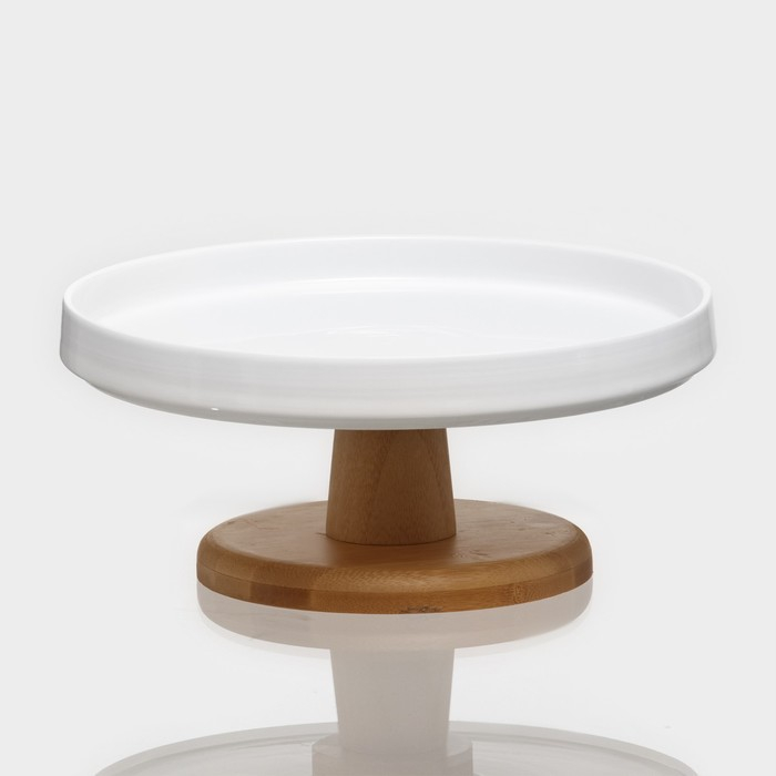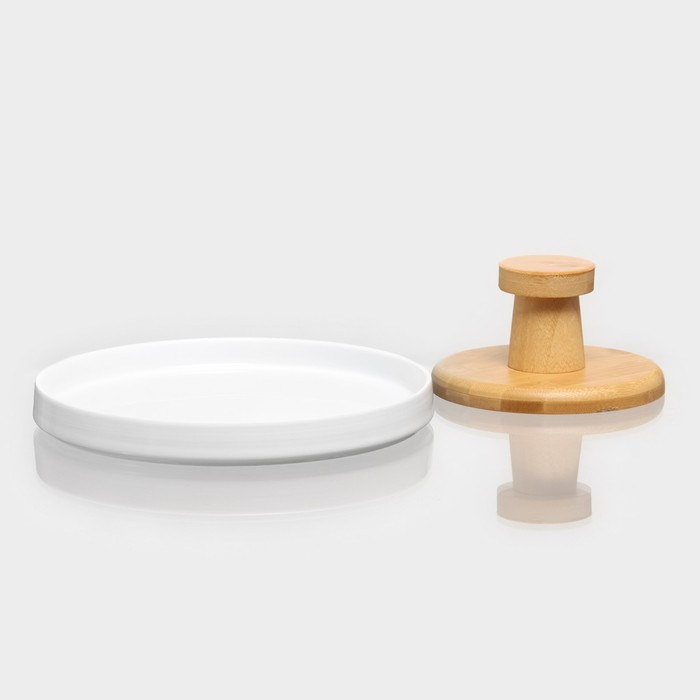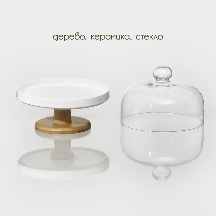 Подставка для десертов керамическая с крышкой-клош на деревянной ножке BellaTenero, d=24 см, цвет белый