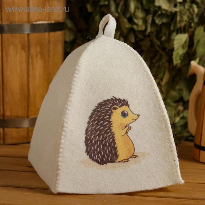 Шапка для бани с детским принтом "Ёжик" , белая