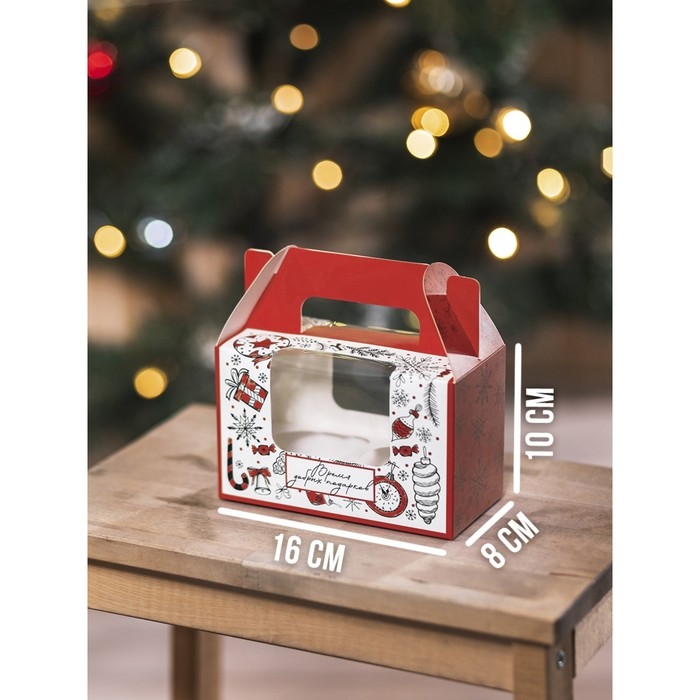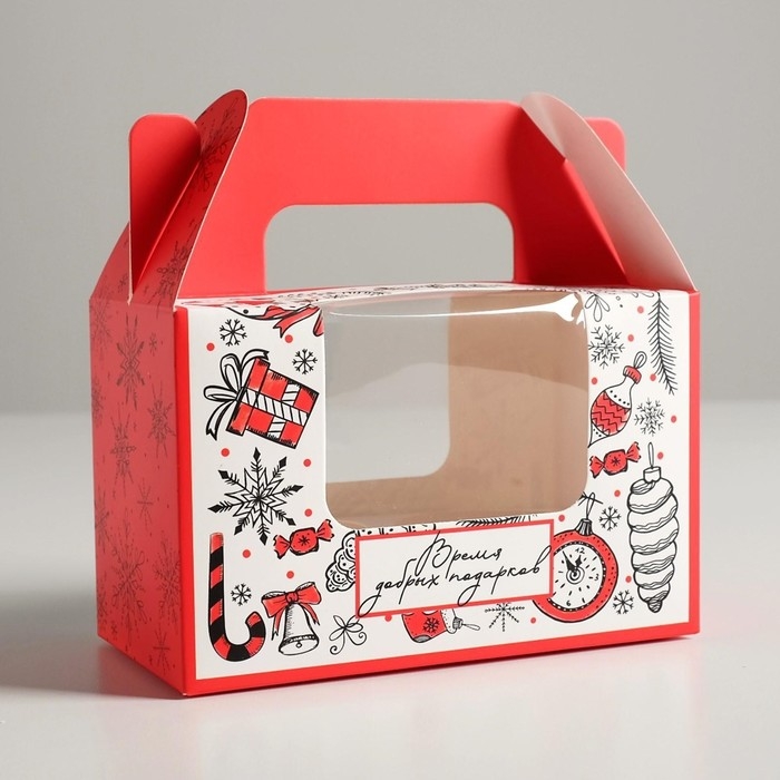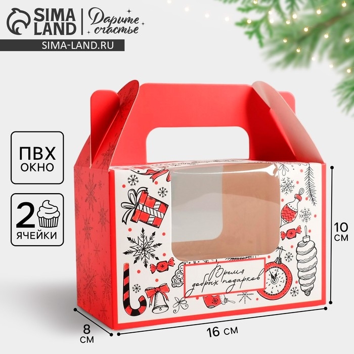 Коробочка для кексов «Время добрых подарков», 16 х 10 х 8 см, Новый год