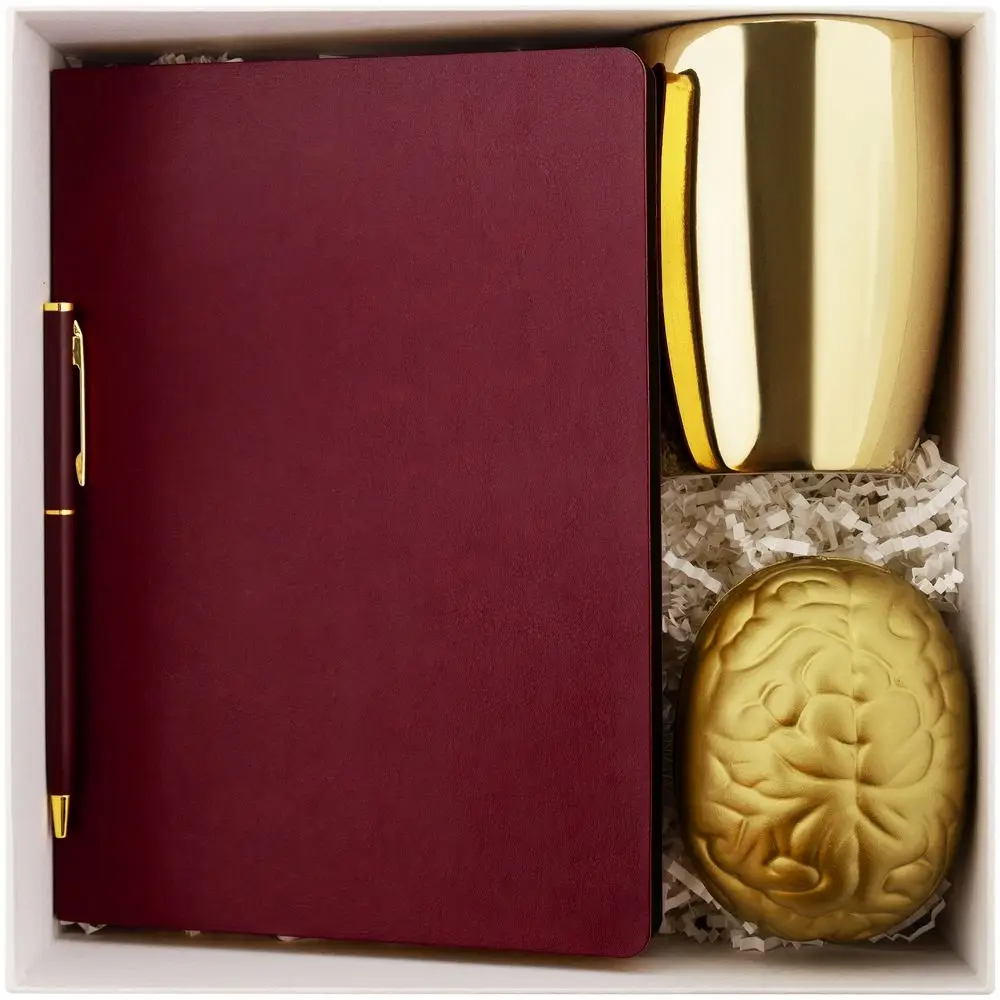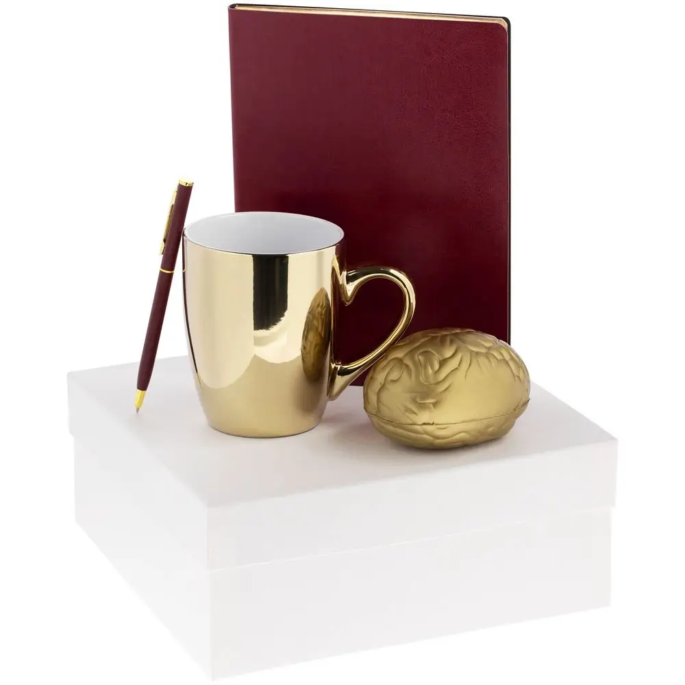 Позолоченный эффект в оформлении всех составляющих набора — выигрышный визуальный акцент-комплимент, подчеркивающий особую ценность получателя подарка.