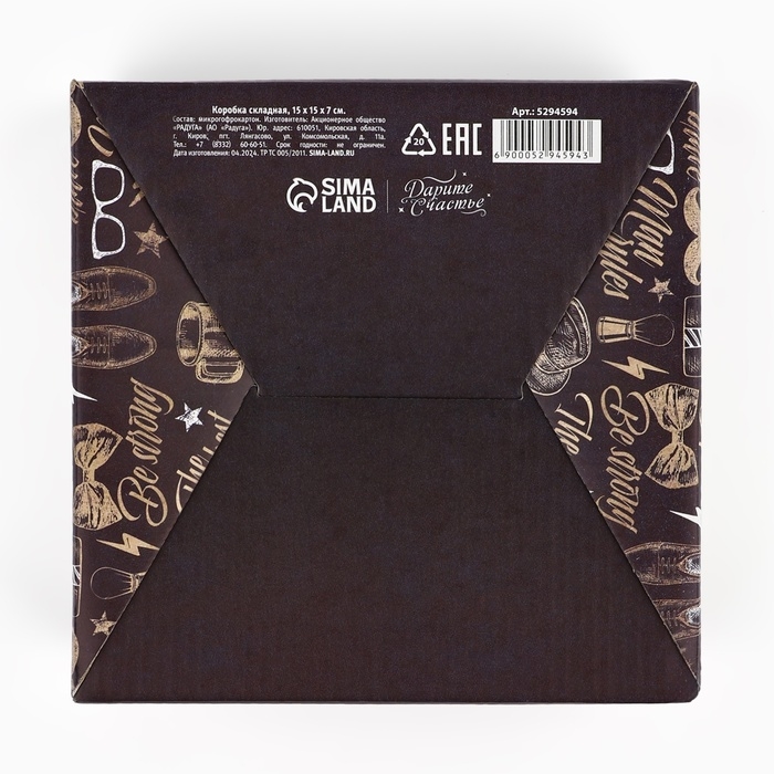 Коробка подарочная сборная, упаковка, «Джентльмену», 15 х 15 х 7 см