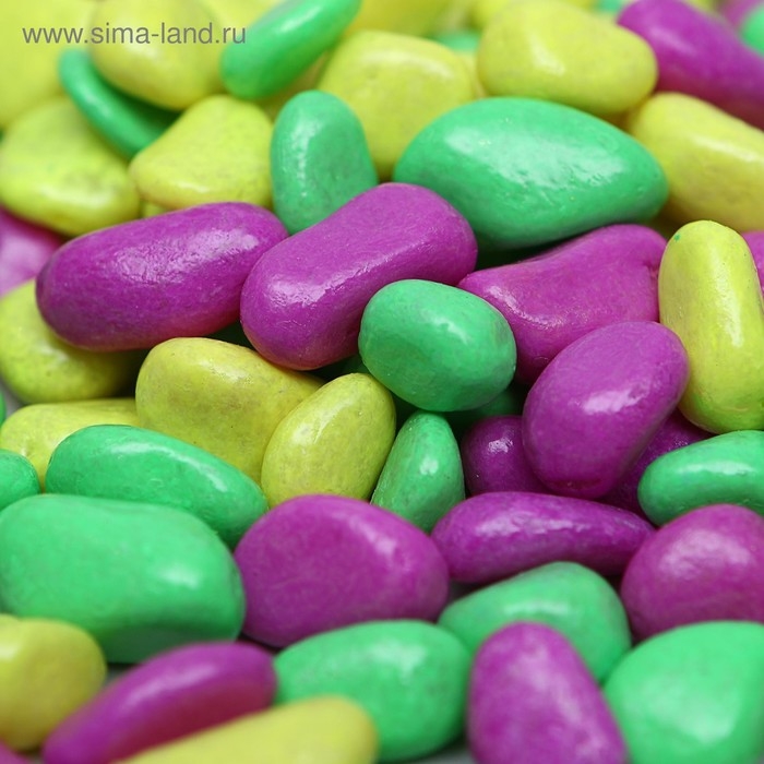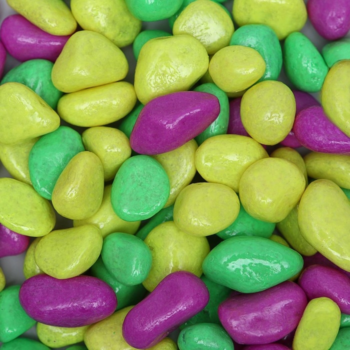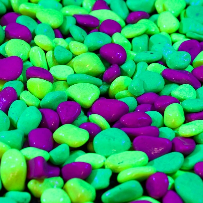 Галька декоративная, флуоресцентная микс: лимонный, зеленый, пурпурный, 800 г, фр.8-12 мм