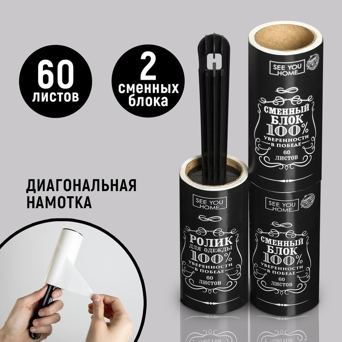 Ролик для чистки одежды «Настоящему мужчине», 60 листов, с двумя сменными блоками