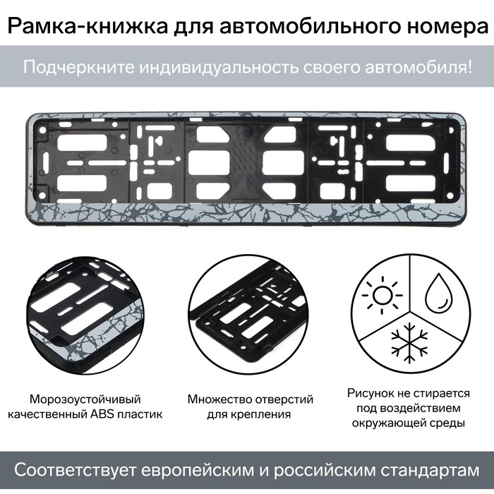 Данная рамка подходит для всех типов автомобилей. Не требует дополнительных приспособлений для прочной фиксации: просто поместите номер в основу и закрепите его нижней планкой. Материал изделия устойчив к внешним воздействиям и перепадам температуры.