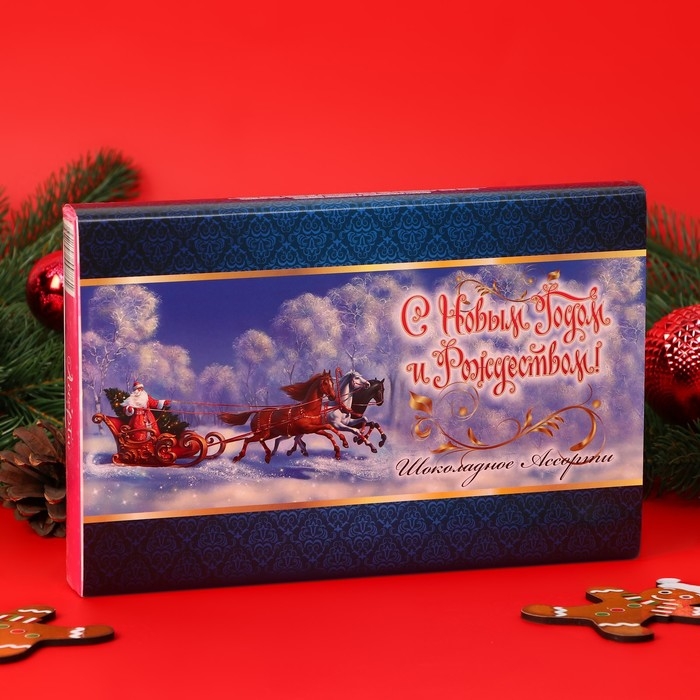 Новый год. Шоколадное ассорти "С новым годом, рождеством" , пенал синий, 125 г