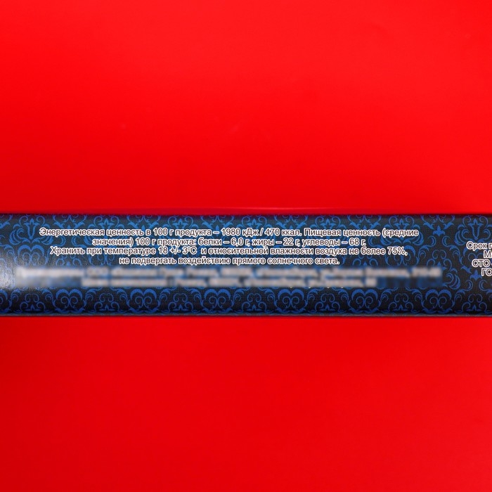 Энергетическая ценность в 100 г продукта – 1980 кДж / 470 ккал. Пищевая ценность (средние значения) 100 г продукта: белки – 6,0 г, жиры – 22 г, углеводы – 68 г.