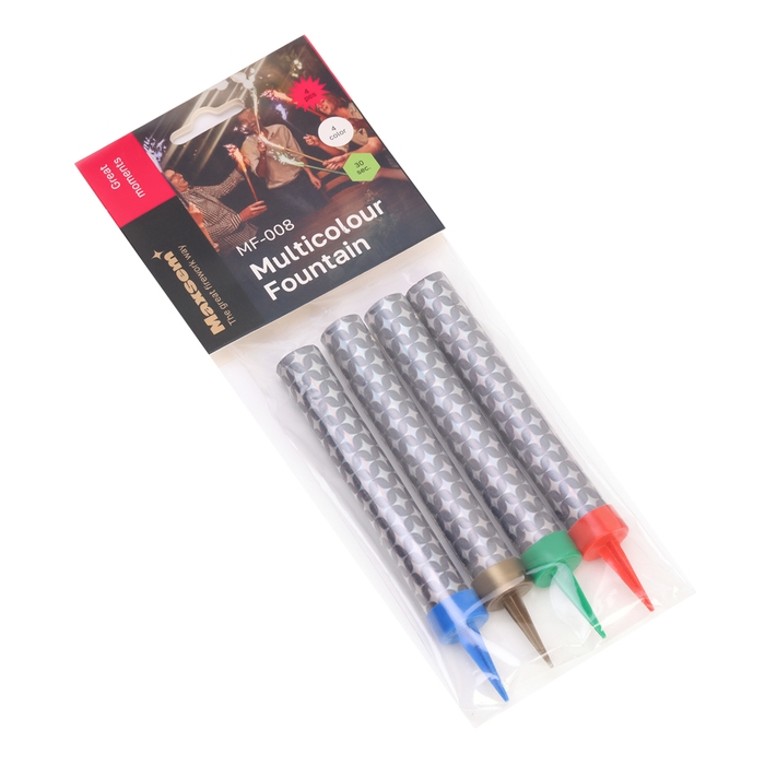 Свечи фонтаны для торта "Цветные искры", 10 см, 30 секунд, цветное пламя, 4 шт