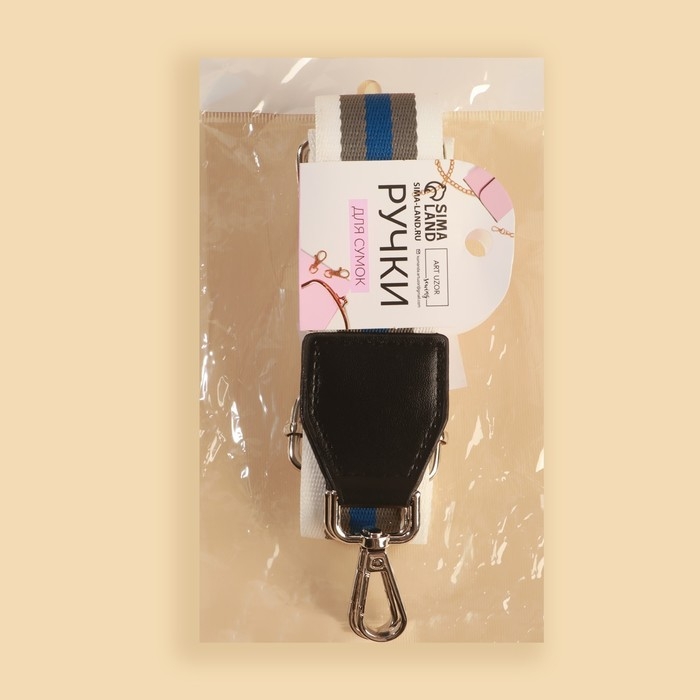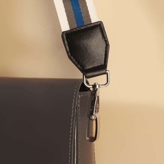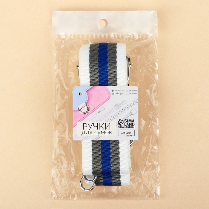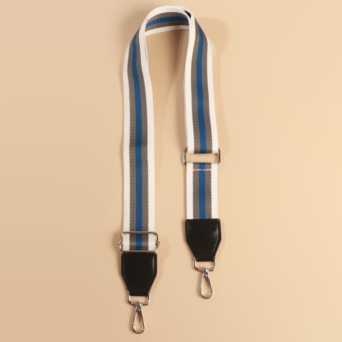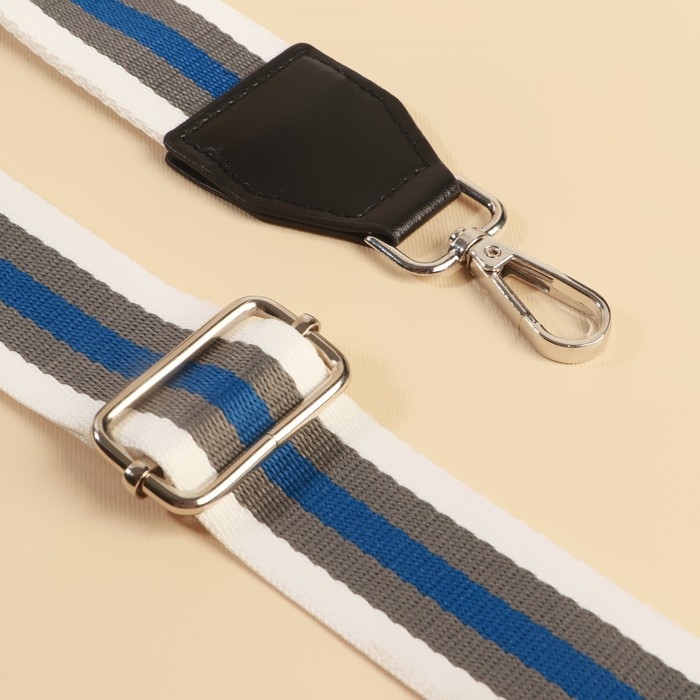 Ручка для сумки, стропа с кожаной вставкой, 140 × 3,8 см, цвет белый/серый/синий