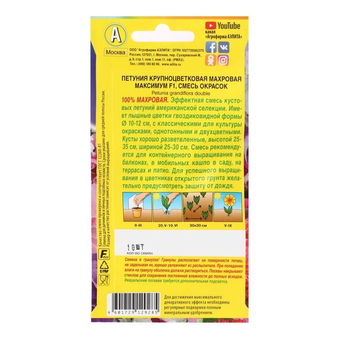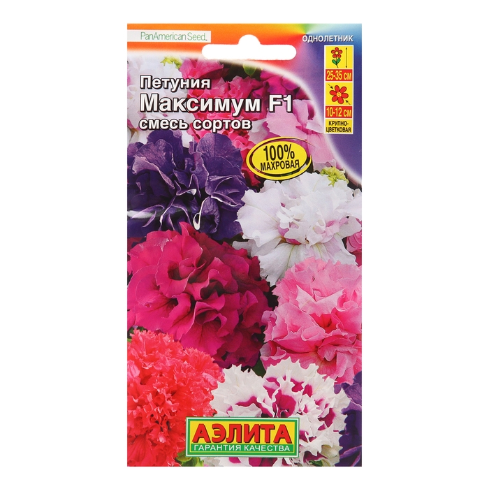 Семена Цветов Петуния Максимум F1 крупноцветковая махровая, смесь окрасок, 5 шт