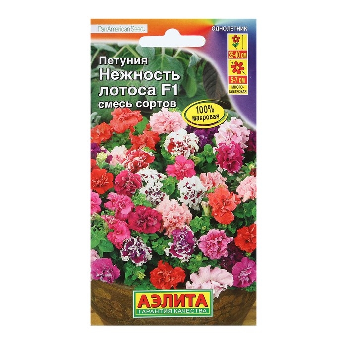 Семена Цветов Петуния Нежность лотоса F1 обильноцветущая махровая, смесь окрасок, 10шт