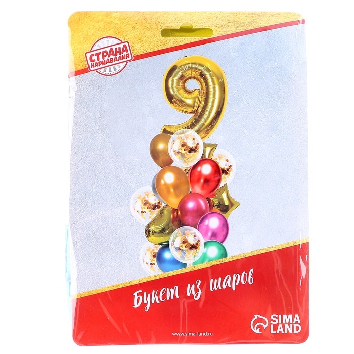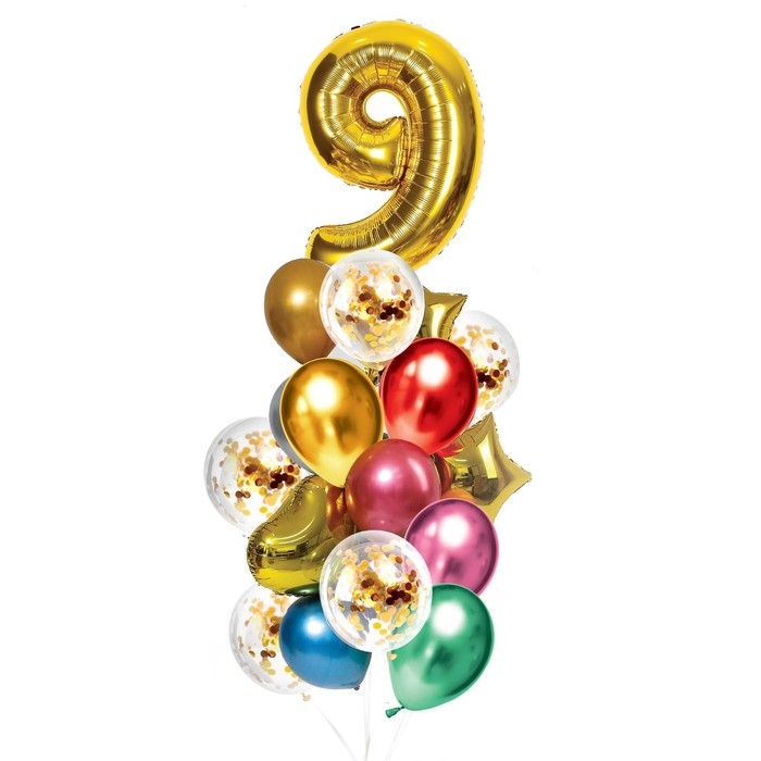 Букет из шаров «День рождения – 9 лет», фольга, латекс, набор 21 шт., цвет золотой