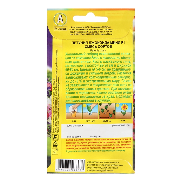 Семена цветов Петуния "Джоконда мини", F1, смесь окрасок, 7 шт
