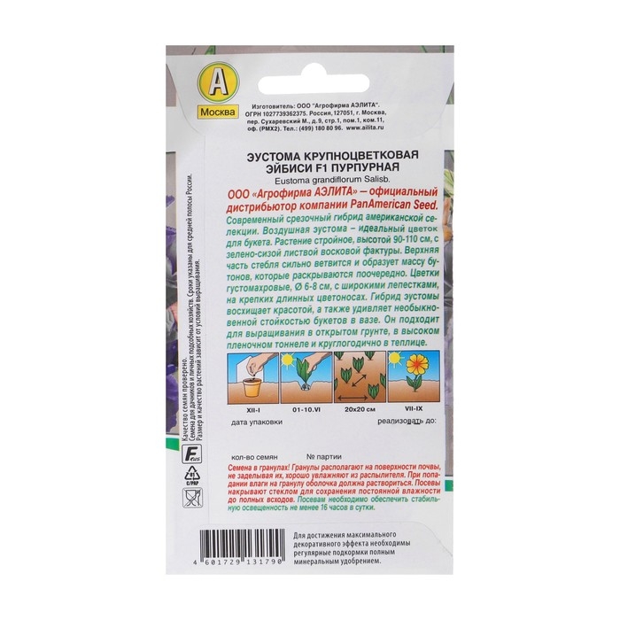 Воздушная эустома – идеальный цветок для букета. Современный срезочный гибрид американской селекции компании PanAmerican Seed – растение стройное, высотой 90-110 см, с зелено-сизой листвой восковой фактуры. Верхняя часть стебля сильно ветвится и образует массу бутонов, которые раскрываются поочередно. Цветки густомахровые, 6-8 см, с широкими лепестками, на крепких, длинных цветоносах. Гибрид эустомы восхищает красивыми цветками, а также удивляет необыкновенной стойкостью букетов в вазе. Растение подходит для выращивания в открытом грунте, в высоком пленочном тоннеле и в теп лице (круглогодично).