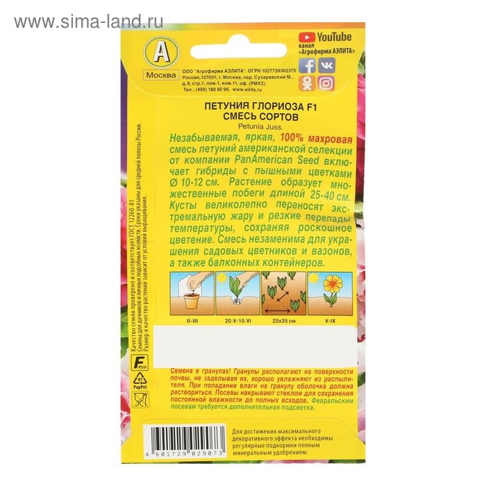 Семена Петуния Глориоза F1 крупноцветковая махровая, смесь окрасок 10 шт.