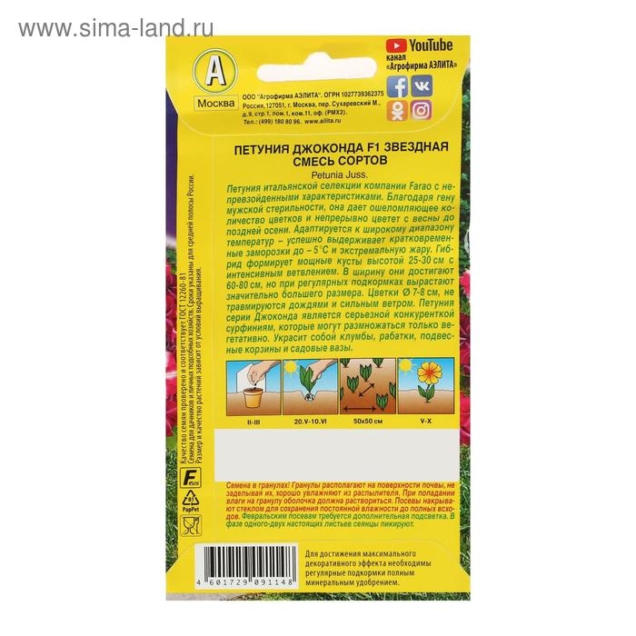 Семена Цветов Петуния Джоконда F1 звездная, смесь окрасок, 7шт