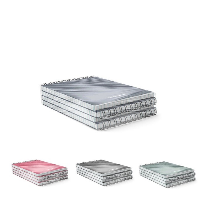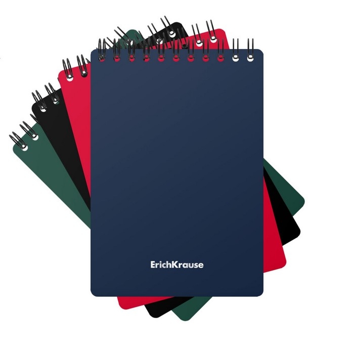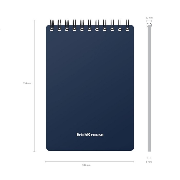 Блокнот формата А6 (102x146 мм). Обложка из высококачественного износостойкого матового пластика с фактурой «песок». В блоке 60 листов в клетку. Бумага офсетная плотностью 55 г/м2. Цвет линовки — синий. Скругленные уголки обложки. Тип скрепления — спираль. Блокноты одного цвета упакованы в термоусадочную пленку по 4 штуки. Товар поставляется в нескольких вариантах цвета без возможности выбора.