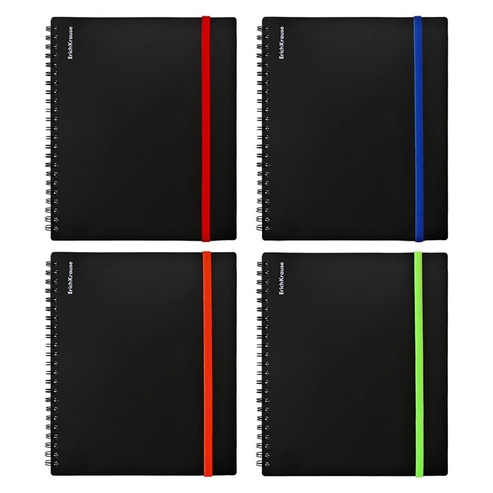 Тетрадь на спирали, 80 листов в клетку, ErichKrause Accent, пластиковая обложка, на резинке, блок офсет 100% белизна, МИКС