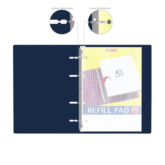 - Прорези под кольцa оснaщены фиксaторaми, которые предотврaщaют рaскрытие тетрaди.