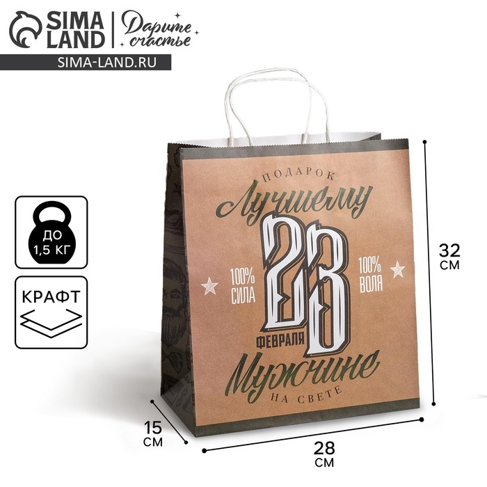 Пакет подарочный крафт, упаковка, «Лучшему мужчине», 28 х 32 х 15 см