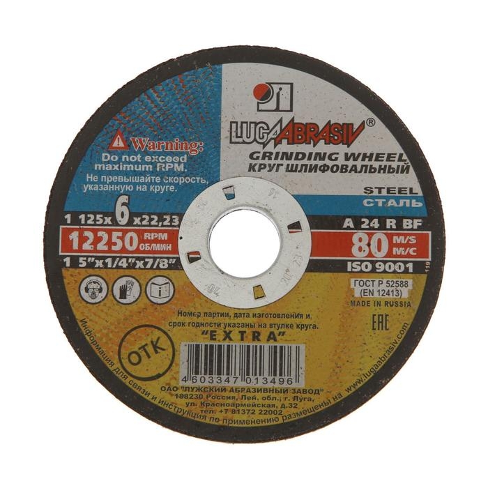 Круг зачистной по металлу "Луга", A 24 R BF (14А БУ 80), 125х6х22 мм