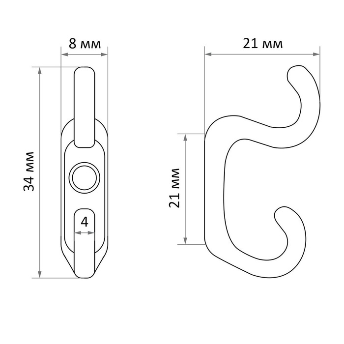 Крючок мебельный ТУНДРА TKD010, двухрожковый, хром, 10 шт