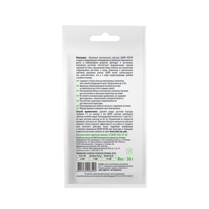 Ионитный субстрат ZION - это натуральная комплексная добавка, которая содержит в себе все элементы питания, необходимые для гармоничного роста растения.