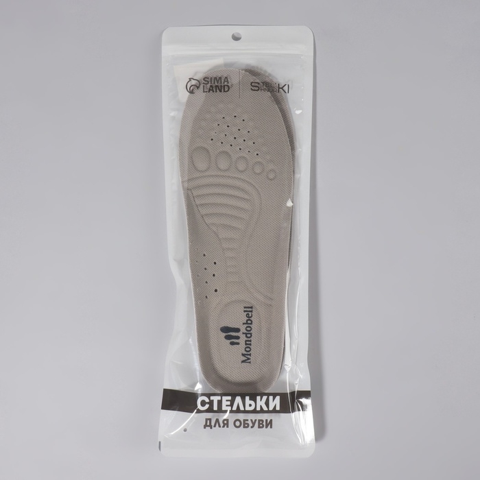 Стельки для обуви, универсальные, дышащие, р-р RU до 45 (р-р Пр-ля до 47), 28,5 см, пара, цвет серый