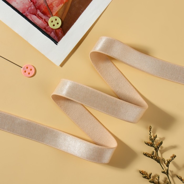 Резинка для бретелей, блестящая, 15 мм, 10 ± 0,5 м, цвет бежевый